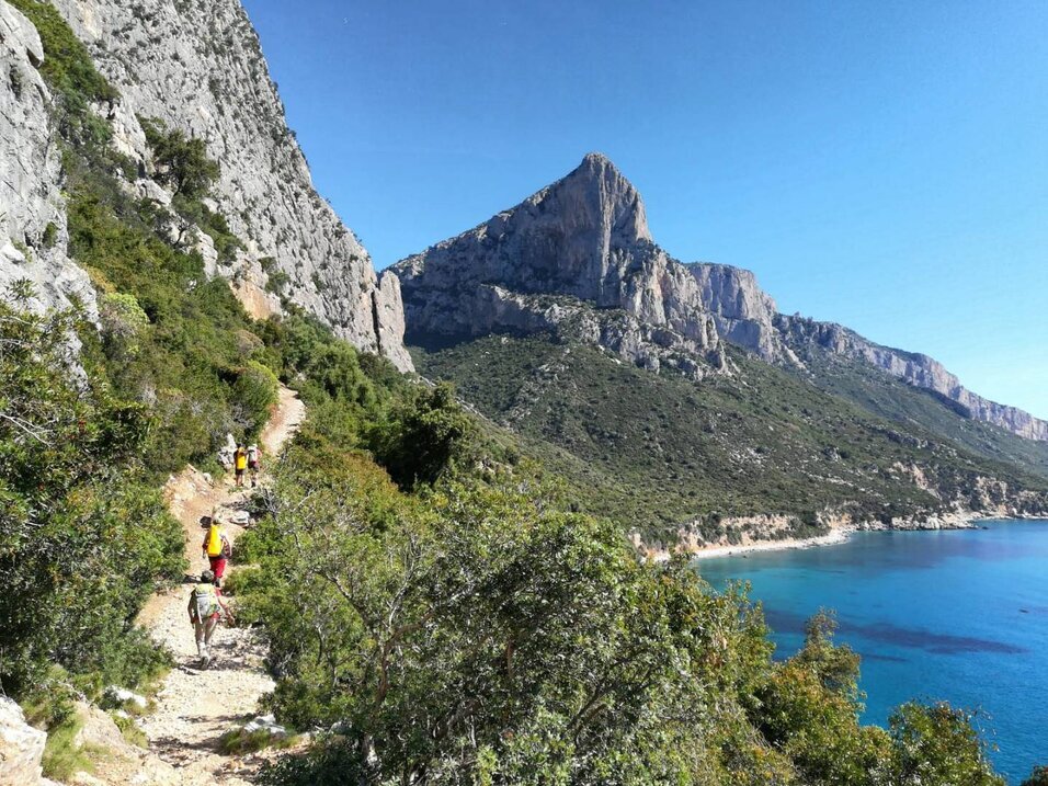 Il tratto che percorreremo insieme è classificato di difficoltà E. Ci permetterà di vivere un’esperienza nella natura selvaggia, senza eccessiva difficoltà. Tutto l’itinerario è prospiciente sul mare, talvolta a meno di dieci metri. Il candido calcare ci sovrasta alla sinistra, mentre la verde macchia mediterranea lo nasconde attorno a noi. Lasceremo nelle prime ore del mattino la bellissima Santa Maria Navarrese (frazione a mare di Baunei), per dirigerci verso l’imponente Pedra Longa. Le diverse inclinazioni della luce solare contribuiranno a farci vivere nell’arco della mattinata differenti tonalità di blu in perfetto contrasto con il verde della vegetazione e il bianco lucente del calcare.